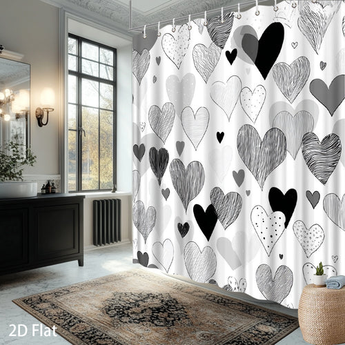 1pc Modern Heart Pattern Shower Curtain - Black White Grey Hearts Design